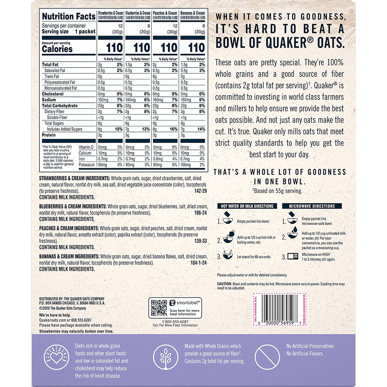 Quaker Instant Oatmeal Fruit & Cream, Variety Pack (40 Pk.) Net Wt 42.3 Oz